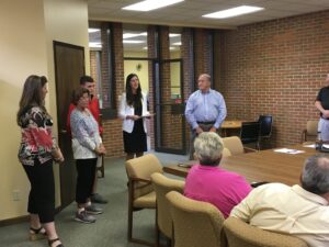 Last fall, Bill and Debbie Herdrich were recognized at the Rush County Community Foundation’s 25th Anniversary Celebration for their extensive contributions to our community and to the Rush County Community Foundation (RCCF). On Tuesday evening, the Board of Directors of the Rush County Community Foundation formally recognized Bill, Debbie, and the Herdrich family with a brief picture presentation. Alisa Winters, Executive Director of the Rush County Community Foundation, presented the family a framed photo of Bill and Debbie created by Green’s Photography. After the conclusion of the presentation, the photo was hung on the Donor Wall by Bill. The Donor Wall at the Rush County Community Foundation was created in the early 2000’s to honor donors that have contributed $50,000 or more to the Foundation.