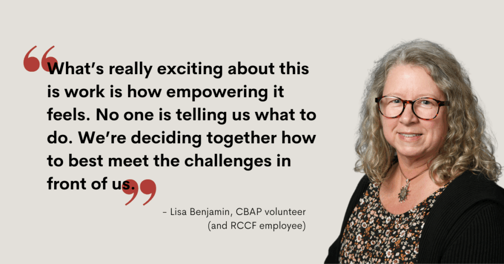 As the Marketing & Communications Officer at RCCF, it is my job to be involved in the Community Based Action Planning (CBAP) process. I need to know what’s happening to be able to share the progress with you.