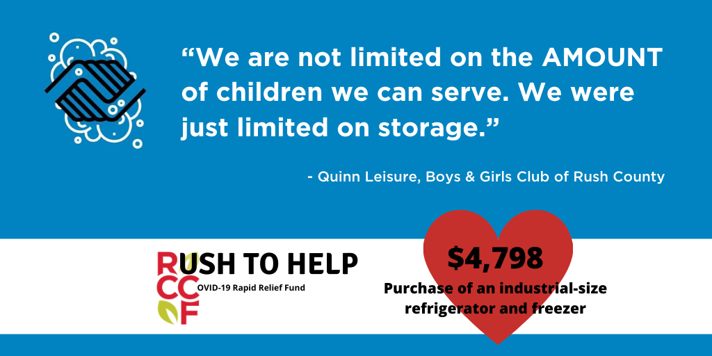The Boys and Girls Club of Rush County becomes the fourth local organization to receive funding. Other Rush to Help grantees include: Rush County Community Assistance Food Pantry, Milroy Community Food Pantry and City of Rushville Intern Program for work with the Rush County Economic Recovery Taskforce.