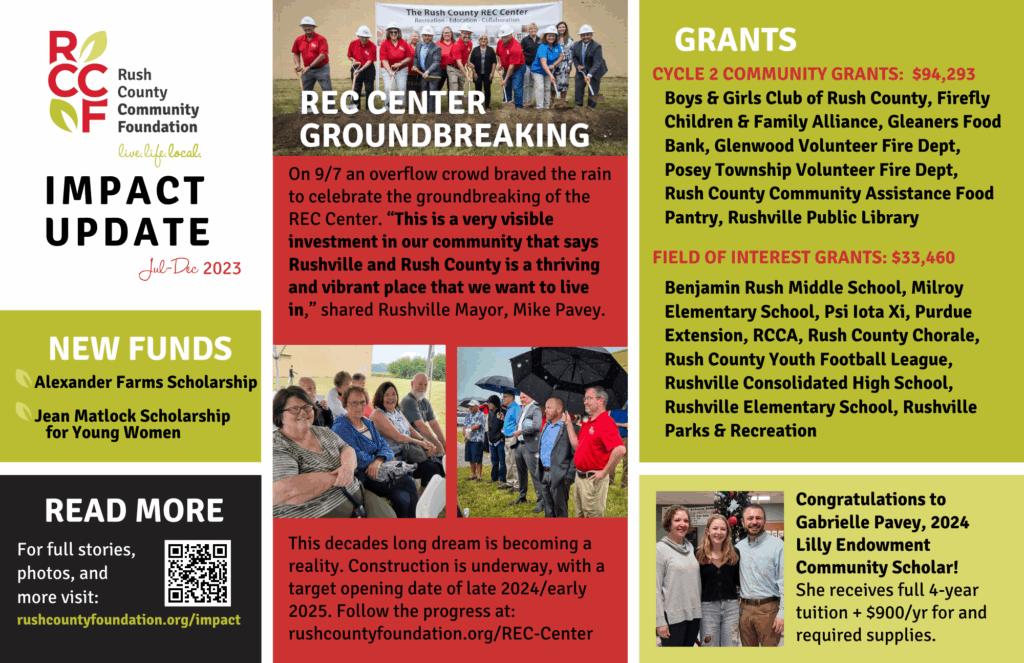 Lilly Endowment Inc. has awarded us two planning grants through the GIFT VIII Initiative. Both will give you the opportunity to share your thoughts, ideas, and feedback. Rush County Planning Grant In 2019 through GIFT VII, we hosted a series of listening sessions and released an online