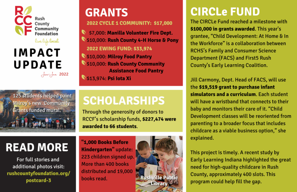2022 Grantee: “Child Development: At Home & In the Workforce”” program. This is a collaboration between Rushville Consolidated High School’s (RCHS) Family and Consumer Science Department (FACS) and First5 Rush County’s Early Learning Coalition.