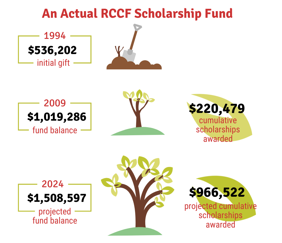 Through the power of endowment, your gifts to RCCF grow over time while making grants to accomplish good work now, and for years to come. Whether it’s $500,000 or $5, your impact will last forever.